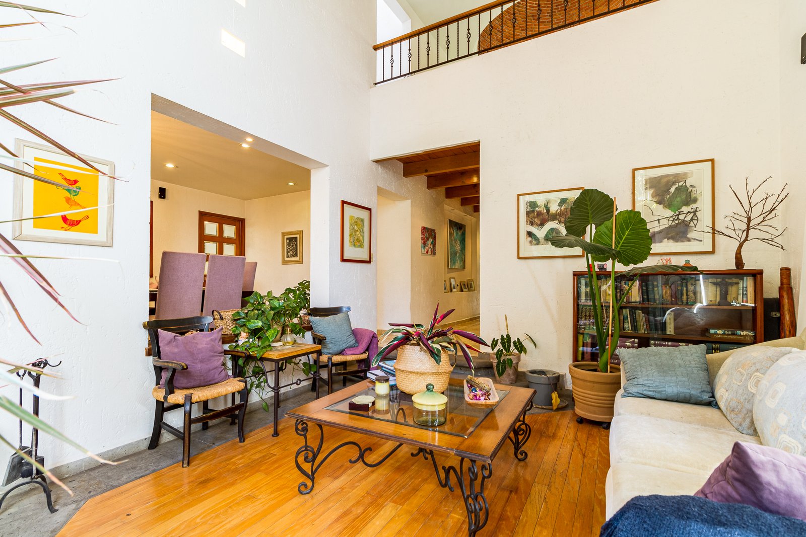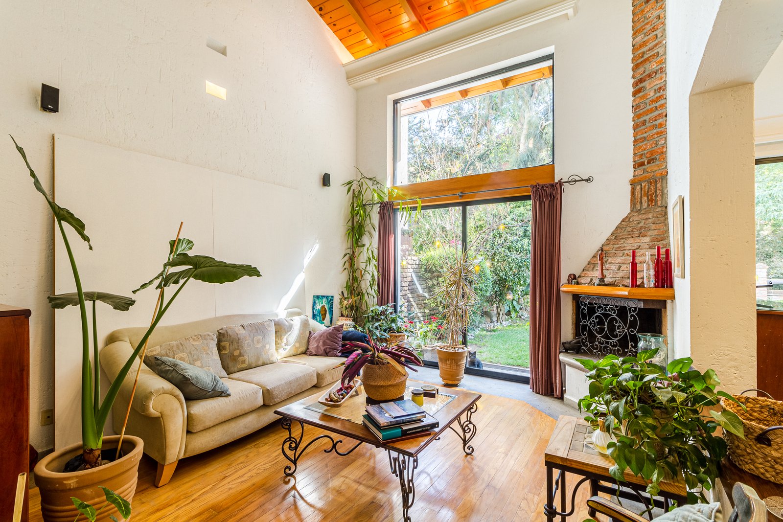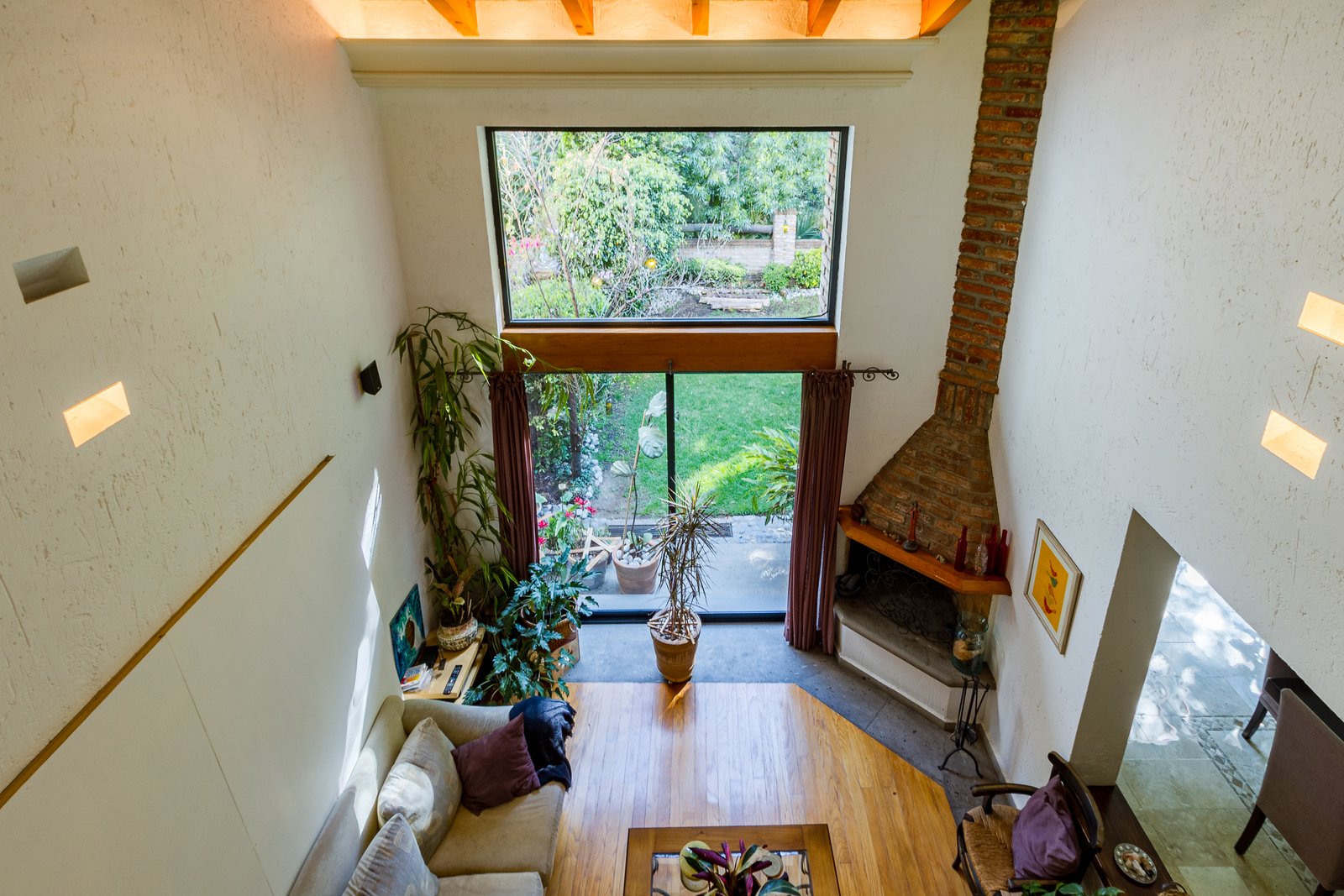 Sala con doble altura y una hermosa chimenea