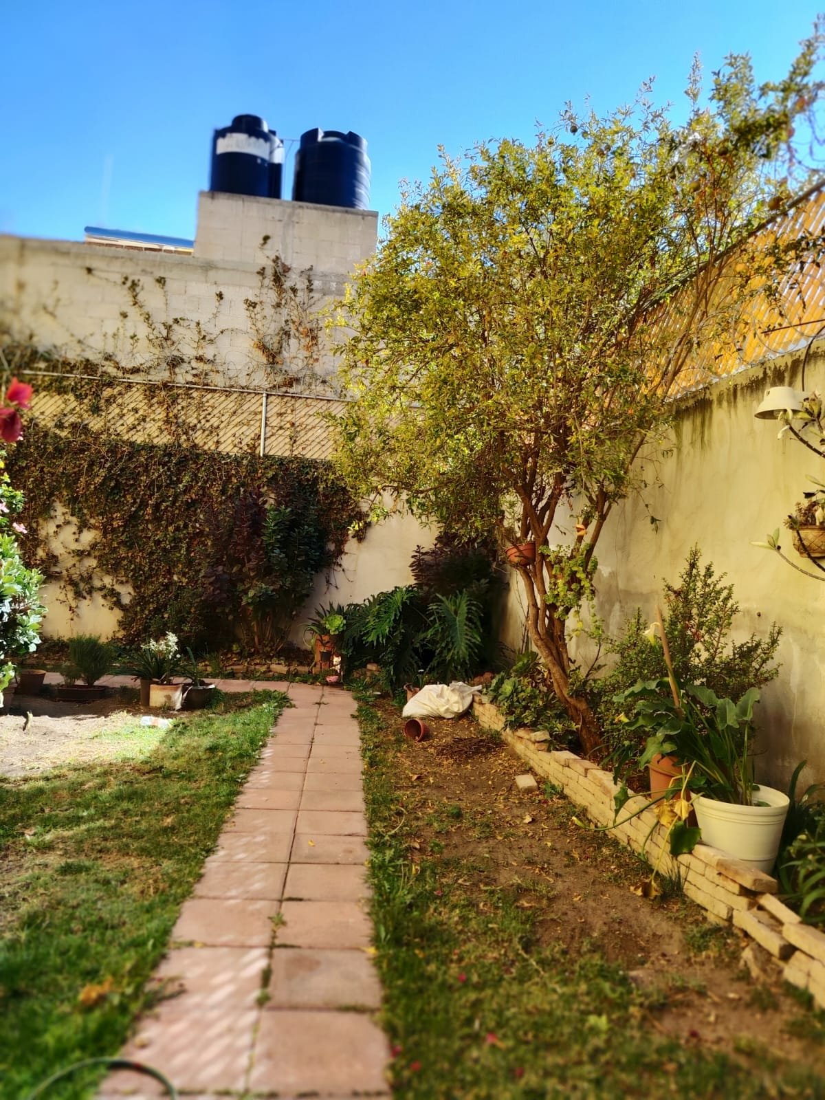 Jardín techado de 100 m², patio y asador.