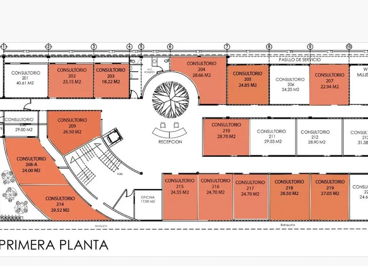 3 niveles con 60 consultorios en total